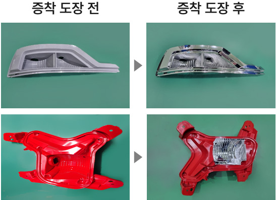 자동차 전후방 안개등, 방향지시등을 사출 및 빛을 반사하는 진공증착을 통해 자동차 주행 중 생기는 모래먼지로부터 렌즈를 보호하는 하드코팅 기술을 주축으로 램프류를 제조·공급하고 있습니다.